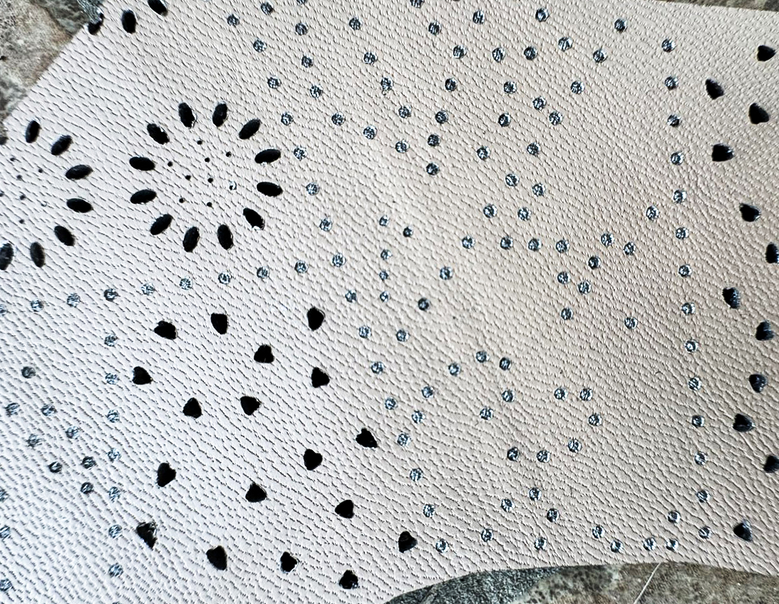 L’utilizzo del laser sulle suole in cuoio è essenziale per realizzare fori e asole per accessori o componenti, oltre che per eseguire la foratura necessaria all’iniezione della gomma antiscivolo.